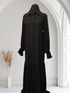 This premium formal linen abaya features a tailored shirt collar and elegant front buttons, elevated with soft ruffle details at the hem and sleeves. Made from our signature custom-woven linen: lightweight, easy to iron, and in a deep charcoal-black shade that embodies the luxury of Black Modesty. Designed for the woman who values both elegance and practicality, making it the perfect choice for any occasion.